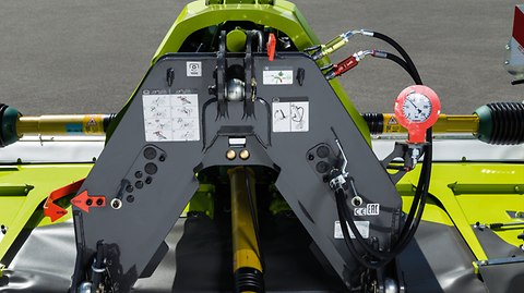 DISCO MOVE bevæger sig både vandret og lodret uafhængigt af traktorliften og sørger selvstændigt for hævningen af slåmaskinen. Det lave drejepunkt på knivbjælken til små ujævnheder i marken og MOVE kinematikken til store ujævnheder sikrer ideel tilpasning til terrænet – slåmaskinen kan bevæge sig hele 1000 mm op og ned. Den hydro-pneumatiske aflastning ACTIVE FLOAT, der kan indstilles under kørslen, er integreret i monteringsbukken som standard.