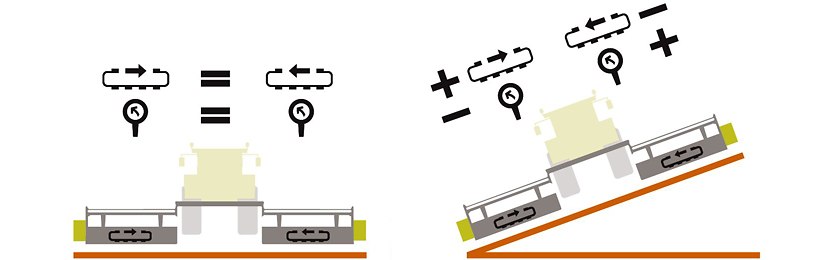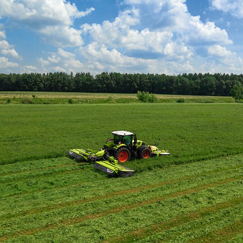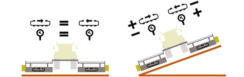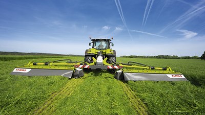 Ved hjælp af en hældningssensor på monteringsbukken til- passer marktrykket (ACTIVE FLOAT) og båndhastigheden sig automatisk til den aktuelle hældning. Ved behov kan den ønskede ændring af trykket afhængigt af hældningsgraden indstilles nemt på terminalen. Det aflaster føreren og forbedrer arbejdskvaliteten. Den ændrede friktionskraft modvirker afdriften på grund af hældningen positivt, så græstørven skånes. Resultatet er optimal form på skåret ved kørsel på tværs af hældningen og reduceret risiko for dannelse af striber eller tilsmudsning af foderet.
