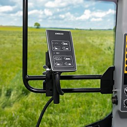 DISCO 1010 fås desuden også med COMFORT-udstyr, som kombinerer de enkle grundfunktioner med ISOBUS-betjeningen. Op- og nedklapning sker via en styreenhed, hvilket gør det muligt at integrere løftet i foragerstyringen. Load sensing-hydraulikken styrer automatisk ind- og udklapningen af beskyttelsesdugen, baguddrejningen og transportlåsningen. Yderligere funktioner kan betjenes komfortabelt via ISOBUS eller funktionsknapperne; fx den hurtige og sideuafhængige tilpasning af ACTIVE FLOAT-trykket. Den kombinerede styreenheds- og ISOBUS-betjening af DISCO COMFORT-udstyret er først og fremmest en fordel for kunder med hyppigt skiftende betingelser.