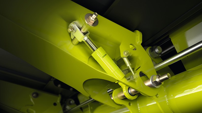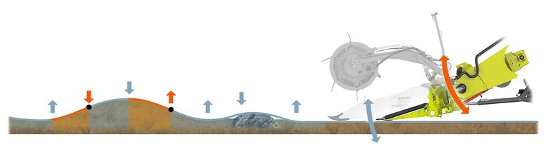 Med aflastningssystemet ACTIVE FLOAT kan knivbjælkens tryk mod marken tilpasses til høstbetingelserne fra kabinen under kørslen.