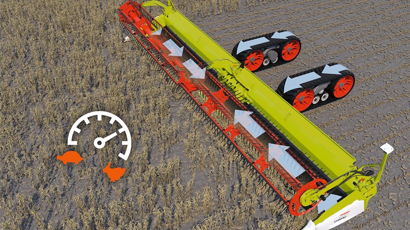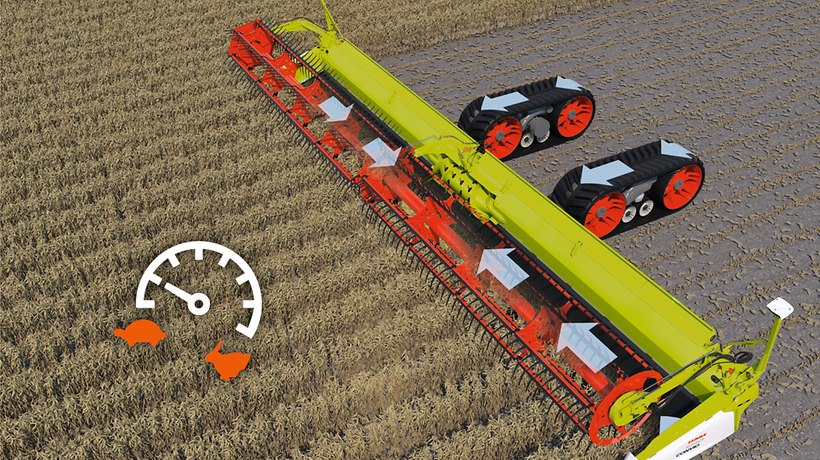 Førerassistentsystemet AUTOMATIC BELT SPEED tilpasser fuldautomatisk og kontinuerligt båndhastighederne til høsthastigheden – under alle afgrødebetingelser.