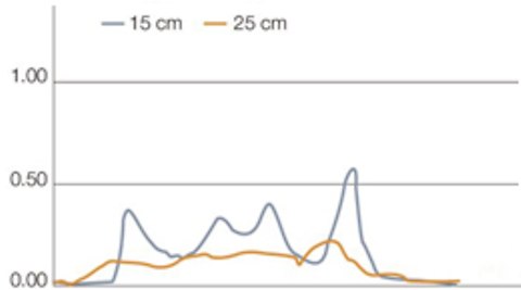 Der er også foretaget undersøgelser af sammentrykningen i forageren. Det blev antaget, at marktrykket på bæltemaskinen stiger i forageren, fordi kontaktfladen mindskes. Allerede ved det 635 mm brede bælte er resultaterne entydige: Trods aktiv foragerkørsel svarer marktrykket ca. til marktrykket på hjulmaskinen.