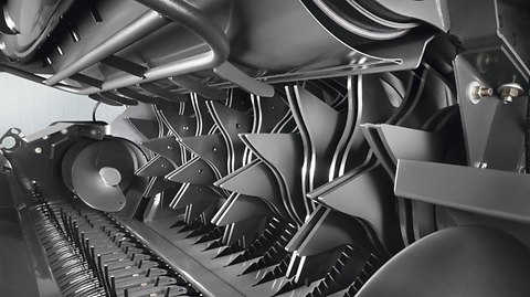 Knivbunden er udstyret med et advarselssignal og tilpasser sig automatisk til mængden af foder. Skulle der alligevel opstå tilstopning, kan denne let fjernes fra kabinen.
