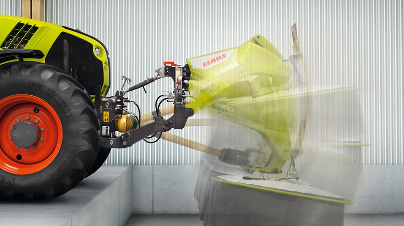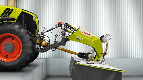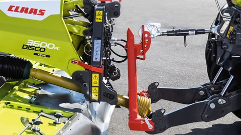 Den enestående monteringsbuk sikrer hurtig og enkel tilkobling af slåmaskinen. Monteringen sker enten på traktorliften eller med hurtigkoblingstrekanten.