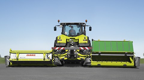 reguleres ved udstyr med en hældningssensor foruden indstillingsområdet også aflastningstrykket samt for AUTO SWATHER modellerne båndhastigheden automatisk. Svingarmen i midten med et særligt bredt ophæng muliggør altid en konstant god marktilpasning - også ved ind- og udskubning.