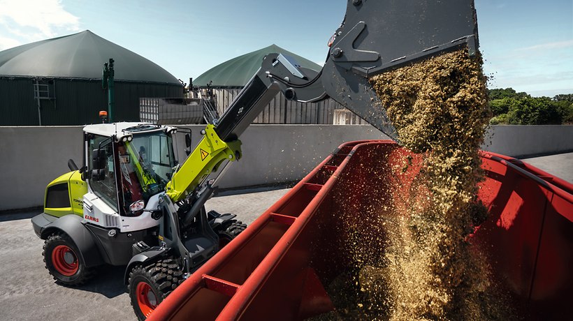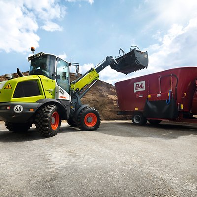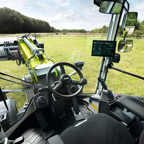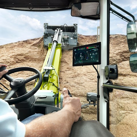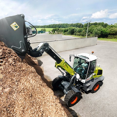 Ingen anden hjullæsser stabler materialet så højt og så sikkert som TORION 738 T SINUS. Dens skovldrejepunkt ligger på imponerende 4,96 m. Arbejdshydraulikken løfter 2,3 tons nyttelast i hele løfteområdet. Den dynamiske belastningsbegrænsning regulerer læsningen automatisk, når man kører til det kritiske område.