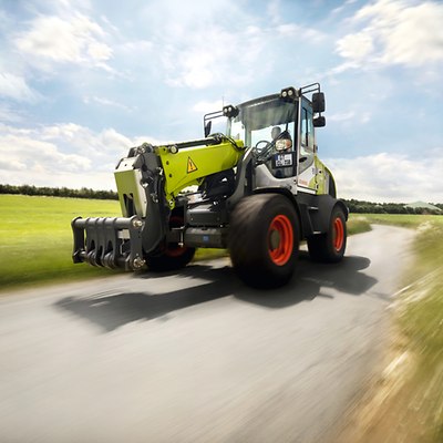 Lille venderadius og stor sikkerhed mod at vælte på grund af knækstyring (30° til hver side) og styret bagaksel (25° til hver side).