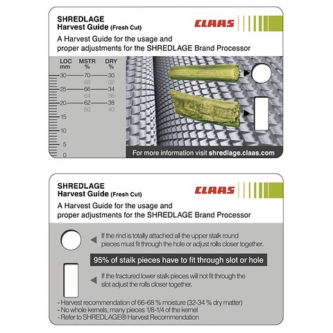 - SHREDLAGE® kontrolkort til bestemmelse af partikellængden og tykkelsen.