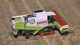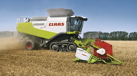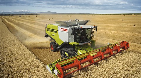 CLAAS starter forsøg med TERRA TRAC på en MEGA mejetærsker. Løbehjulene er med luft.
